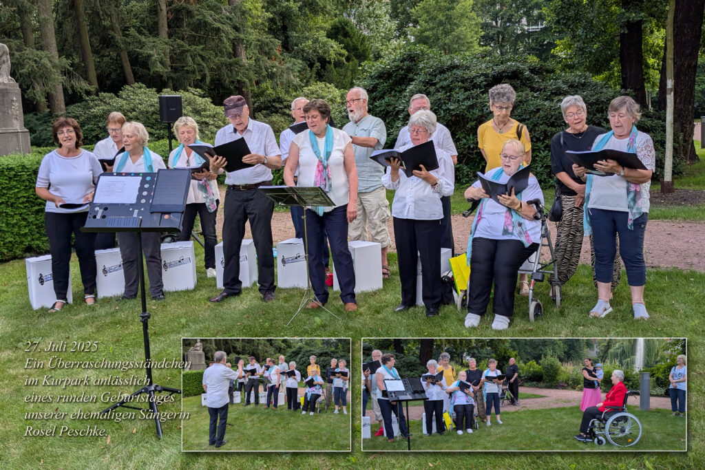 27. Juli 2025 Rosel Peschke, ehemalig unsere Sängerin, hat einen hohen runden Geburtstag. Da gibt es ein Überraschungsständchen im Kurpark